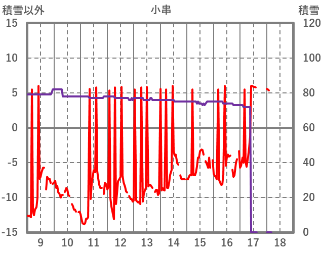 | 日 | 時 | 気温 | 降水 | 風向/風速 | 日照 | 積雪 | 降雪 |