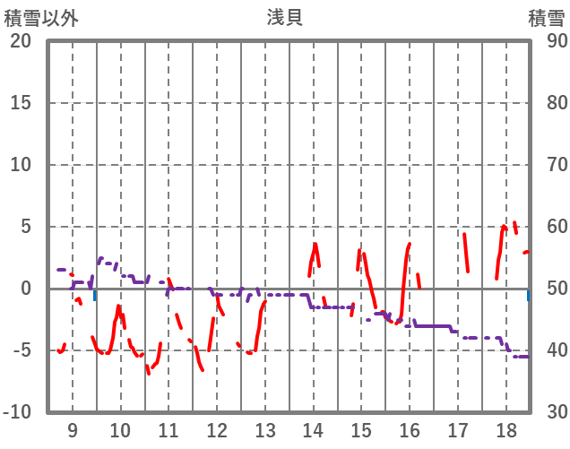 | 日 | 時 | 気温 | 降水 | 風向/風速 | 日照 | 積雪 | 降雪 |