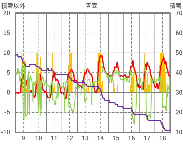 | 日 | 時 | 気温 | 降水 | 風向/風速 | 日照 | 積雪 | 降雪 |