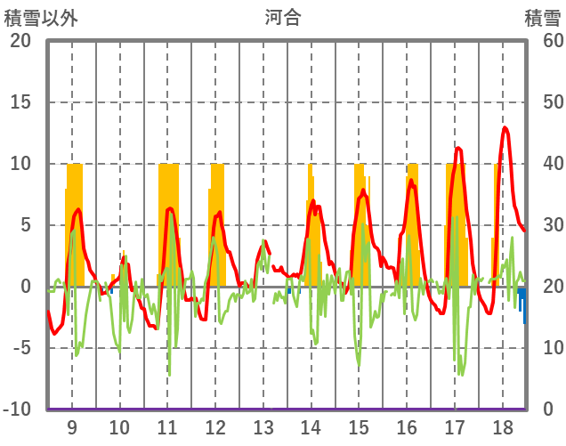 | 日 | 時 | 気温 | 降水 | 風向/風速 | 日照 | 積雪 | 降雪 |