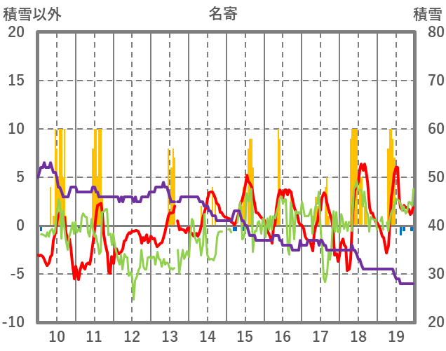 | 日 | 時 | 気温 | 降水 | 風向/風速 | 日照 | 積雪 | 降雪 |