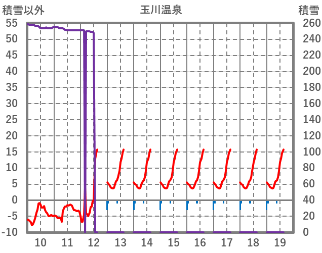 | 日 | 時 | 気温 | 降水 | 風向/風速 | 日照 | 積雪 | 降雪 |