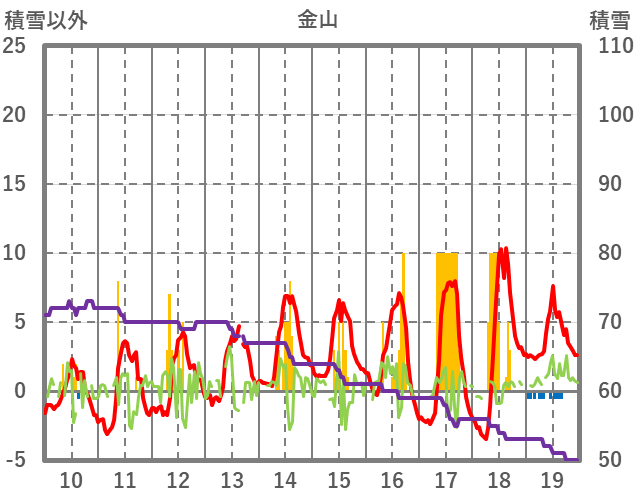 | 日 | 時 | 気温 | 降水 | 風向/風速 | 日照 | 積雪 | 降雪 |
