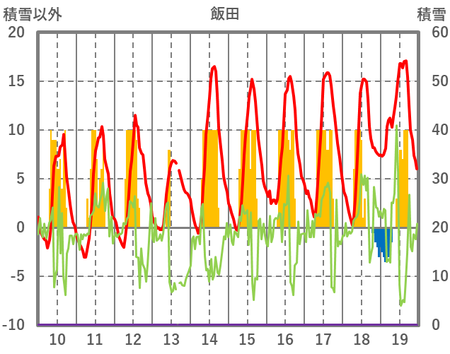 | 日 | 時 | 気温 | 降水 | 風向/風速 | 日照 | 積雪 | 降雪 |