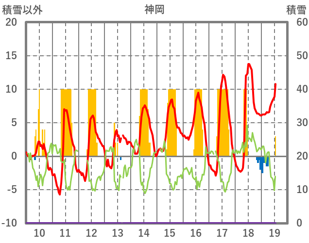 | 日 | 時 | 気温 | 降水 | 風向/風速 | 日照 | 積雪 | 降雪 |