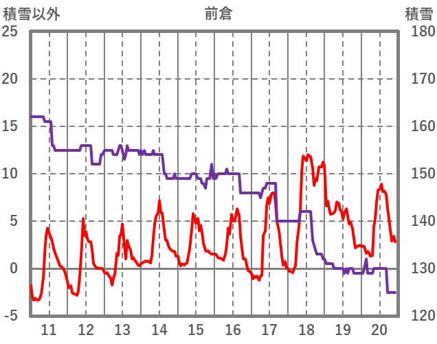 | 日 | 時 | 気温 | 降水 | 風向/風速 | 日照 | 積雪 | 降雪 |