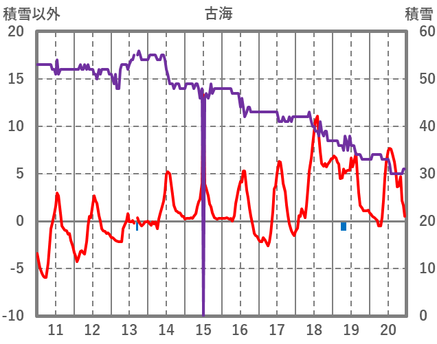 | 日 | 時 | 気温 | 降水 | 風向/風速 | 日照 | 積雪 | 降雪 |