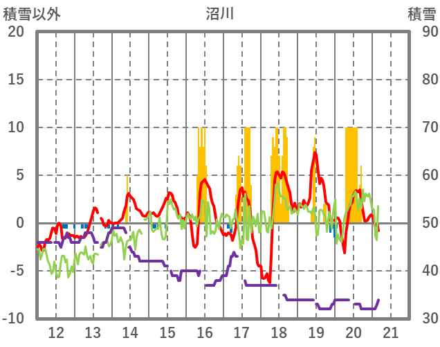 | 日 | 時 | 気温 | 降水 | 風向/風速 | 日照 | 積雪 | 降雪 |