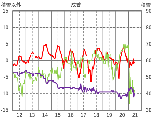 | 日 | 時 | 気温 | 降水 | 風向/風速 | 日照 | 積雪 | 降雪 |