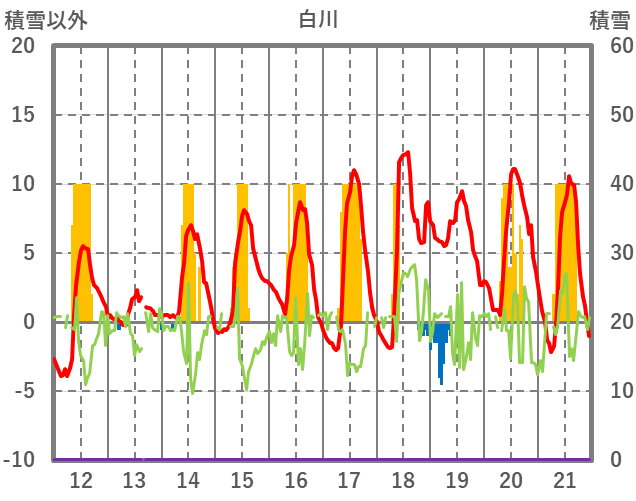 | 日 | 時 | 気温 | 降水 | 風向/風速 | 日照 | 積雪 | 降雪 |