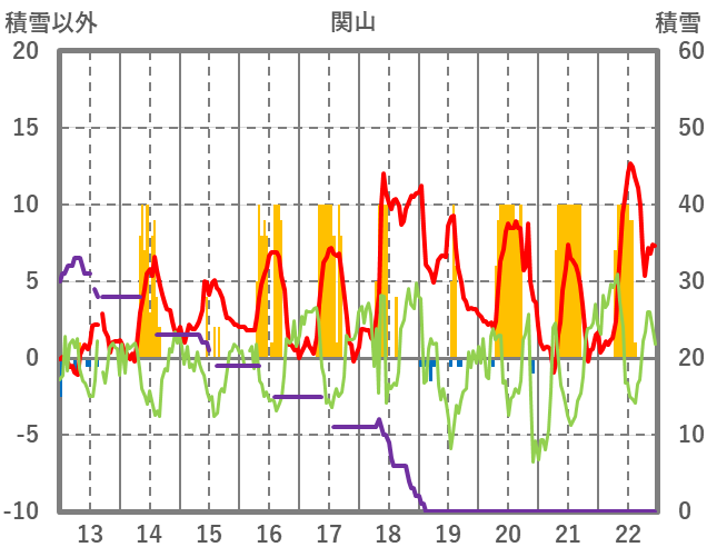 | 日 | 時 | 気温 | 降水 | 風向/風速 | 日照 | 積雪 | 降雪 |