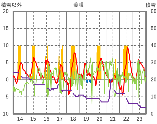 | 日 | 時 | 気温 | 降水 | 風向/風速 | 日照 | 積雪 | 降雪 |