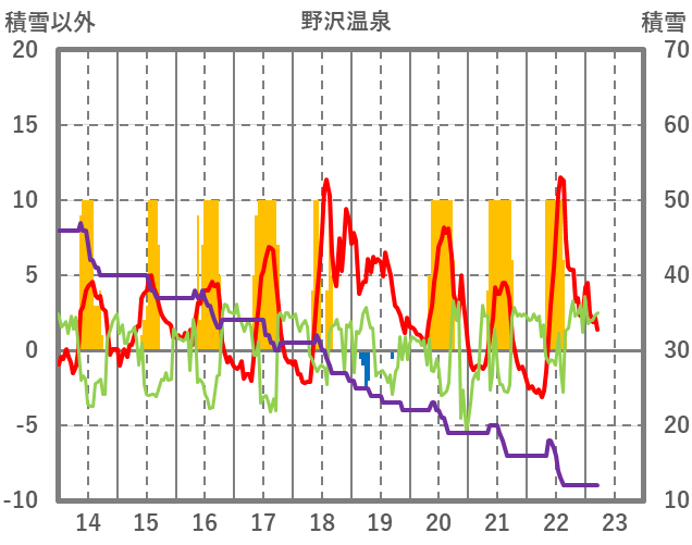| 日 | 時 | 気温 | 降水 | 風向/風速 | 日照 | 積雪 | 降雪 |