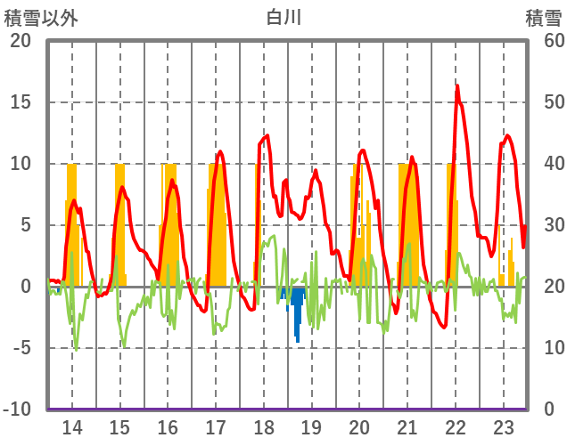| 日 | 時 | 気温 | 降水 | 風向/風速 | 日照 | 積雪 | 降雪 |