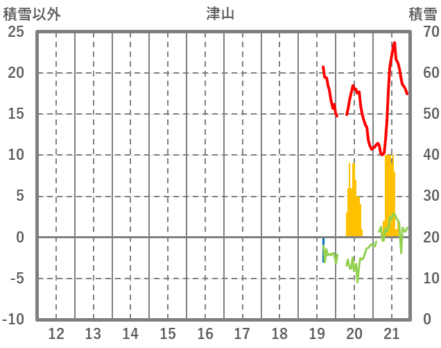 | 日 | 時 | 気温 | 降水 | 風向/風速 | 日照 | 積雪 | 降雪 |