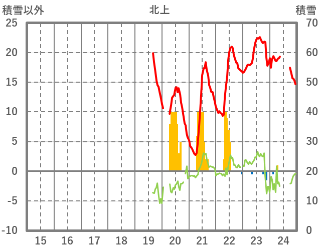 | 日 | 時 | 気温 | 降水 | 風向/風速 | 日照 | 積雪 | 降雪 |