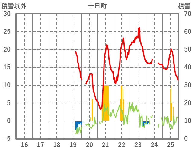 | 日 | 時 | 気温 | 降水 | 風向/風速 | 日照 | 積雪 | 降雪 |