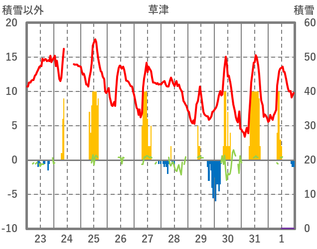 | 日 | 時 | 気温 | 降水 | 風向/風速 | 日照 | 積雪 | 降雪 |