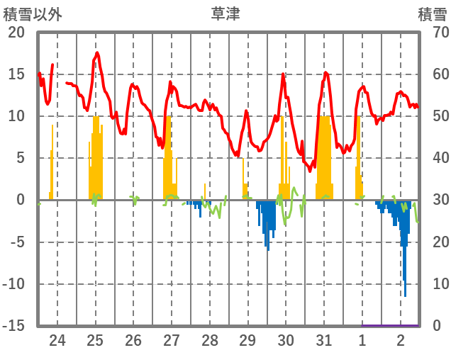 | 日 | 時 | 気温 | 降水 | 風向/風速 | 日照 | 積雪 | 降雪 |