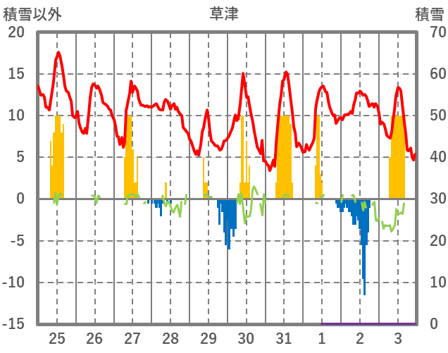 | 日 | 時 | 気温 | 降水 | 風向/風速 | 日照 | 積雪 | 降雪 |