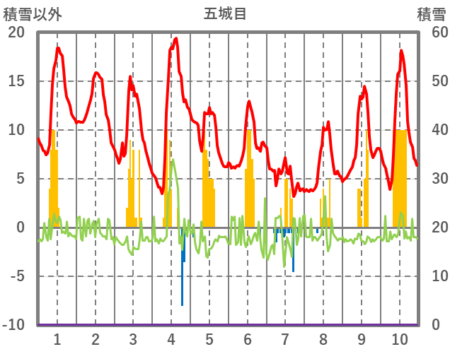 | 日 | 時 | 気温 | 降水 | 風向/風速 | 日照 | 積雪 | 降雪 |