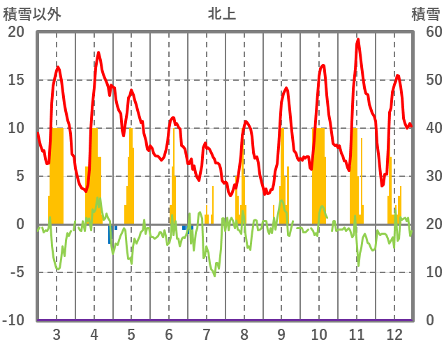 | 日 | 時 | 気温 | 降水 | 風向/風速 | 日照 | 積雪 | 降雪 |