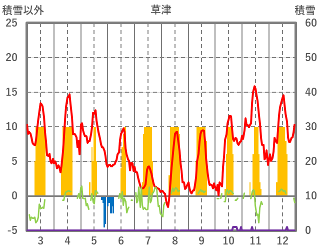 | 日 | 時 | 気温 | 降水 | 風向/風速 | 日照 | 積雪 | 降雪 |
