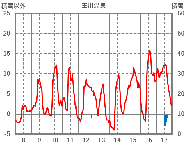 | 日 | 時 | 気温 | 降水 | 風向/風速 | 日照 | 積雪 | 降雪 |