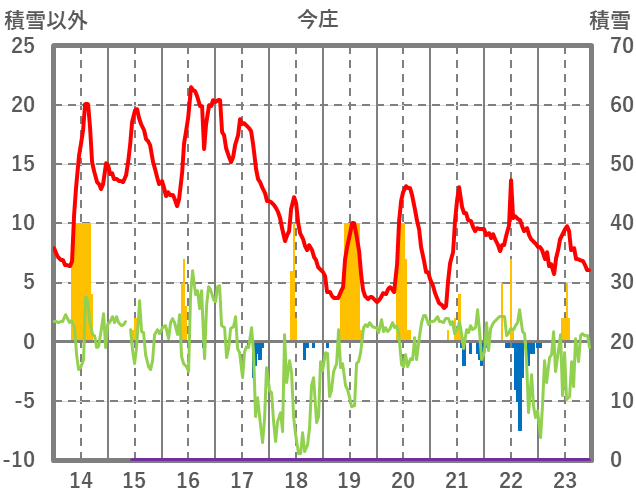 | 日 | 時 | 気温 | 降水 | 風向/風速 | 日照 | 積雪 | 降雪 |