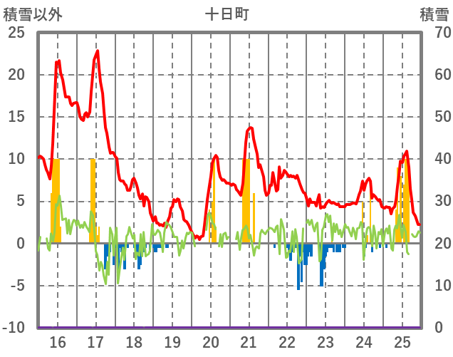 | 日 | 時 | 気温 | 降水 | 風向/風速 | 日照 | 積雪 | 降雪 |