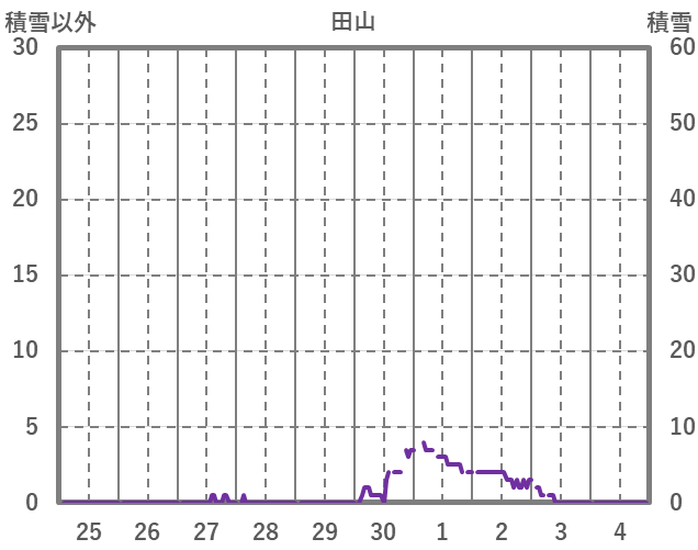 | 日 | 時 | 気温 | 降水 | 風向/風速 | 日照 | 積雪 | 降雪 |