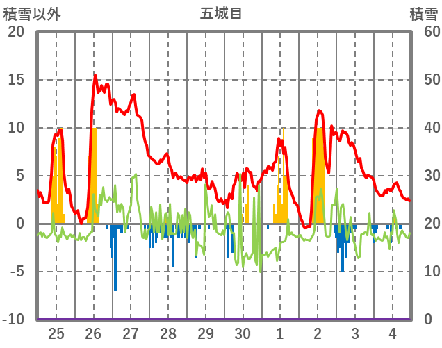 | 日 | 時 | 気温 | 降水 | 風向/風速 | 日照 | 積雪 | 降雪 |
