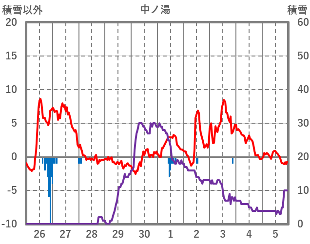 | 日 | 時 | 気温 | 降水 | 風向/風速 | 日照 | 積雪 | 降雪 |