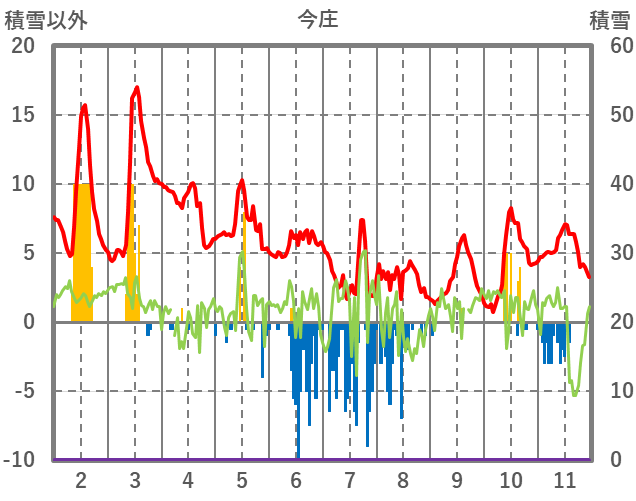 | 日 | 時 | 気温 | 降水 | 風向/風速 | 日照 | 積雪 | 降雪 |