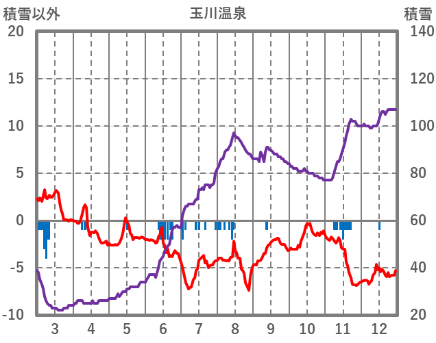| 日 | 時 | 気温 | 降水 | 風向/風速 | 日照 | 積雪 | 降雪 |