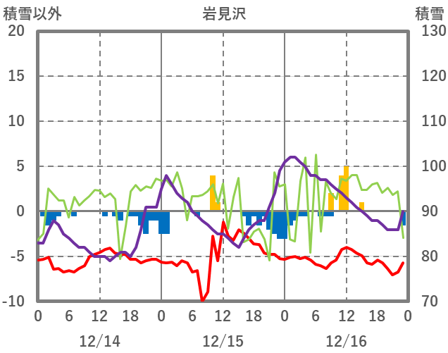 | 日 | 時 | 気温 | 降水 | 風向/風速 | 日照 | 積雪 | 降雪 |