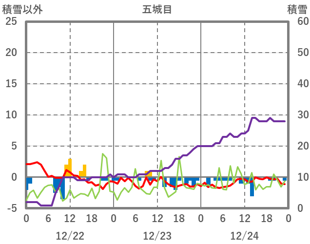 | 日 | 時 | 気温 | 降水 | 風向/風速 | 日照 | 積雪 | 降雪 |