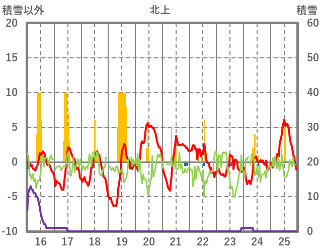| 日 | 時 | 気温 | 降水 | 風向/風速 | 日照 | 積雪 | 降雪 |