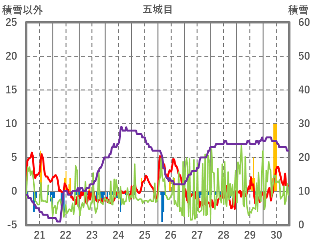 | 日 | 時 | 気温 | 降水 | 風向/風速 | 日照 | 積雪 | 降雪 |