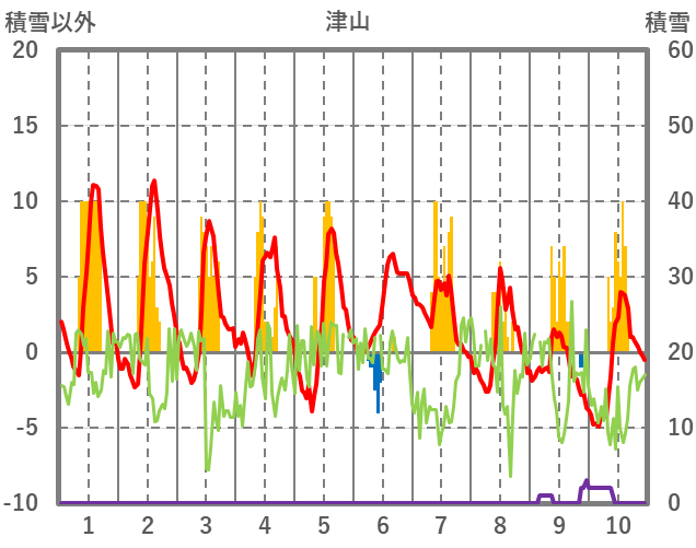 | 日 | 時 | 気温 | 降水 | 風向/風速 | 日照 | 積雪 | 降雪 |