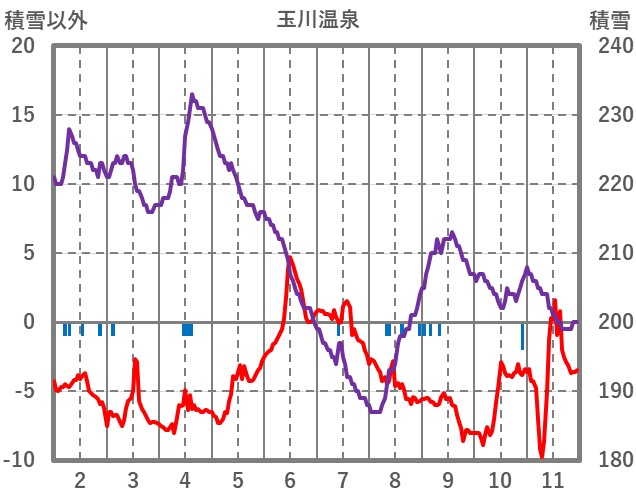 | 日 | 時 | 気温 | 降水 | 風向/風速 | 日照 | 積雪 | 降雪 |