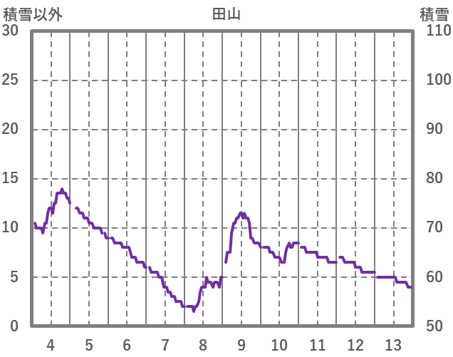 | 日 | 時 | 気温 | 降水 | 風向/風速 | 日照 | 積雪 | 降雪 |