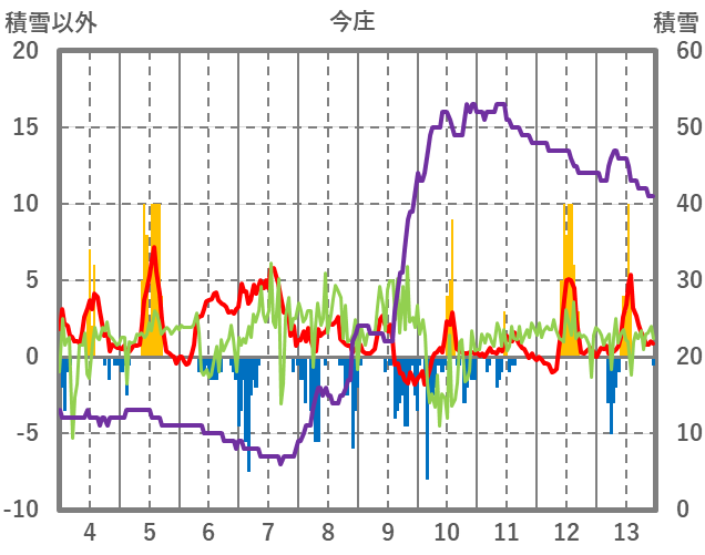 | 日 | 時 | 気温 | 降水 | 風向/風速 | 日照 | 積雪 | 降雪 |