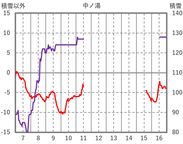 | 日 | 時 | 気温 | 降水 | 風向/風速 | 日照 | 積雪 | 降雪 |