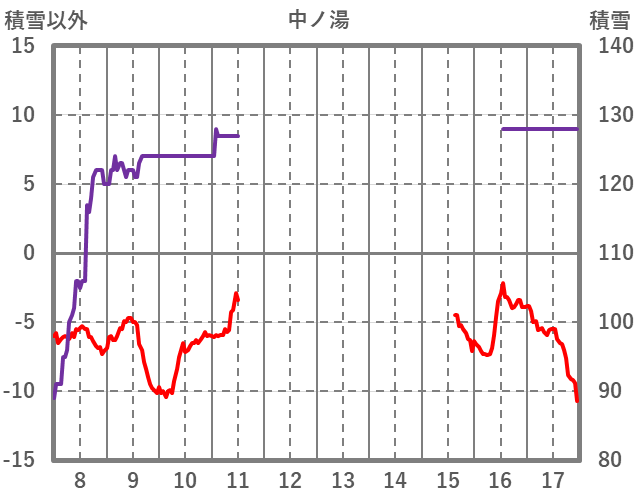 | 日 | 時 | 気温 | 降水 | 風向/風速 | 日照 | 積雪 | 降雪 |
