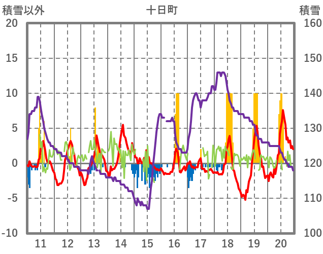 | 日 | 時 | 気温 | 降水 | 風向/風速 | 日照 | 積雪 | 降雪 |