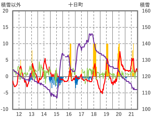 | 日 | 時 | 気温 | 降水 | 風向/風速 | 日照 | 積雪 | 降雪 |