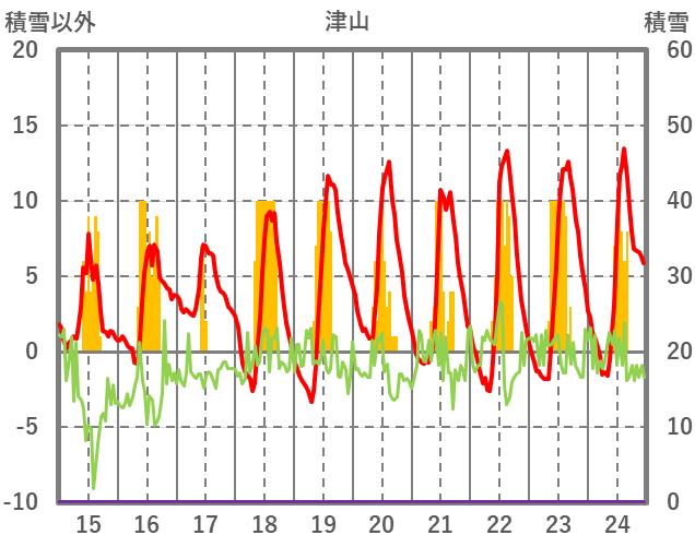 | 日 | 時 | 気温 | 降水 | 風向/風速 | 日照 | 積雪 | 降雪 |
