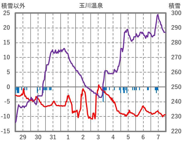 | 日 | 時 | 気温 | 降水 | 風向/風速 | 日照 | 積雪 | 降雪 |