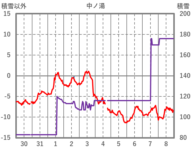 | 日 | 時 | 気温 | 降水 | 風向/風速 | 日照 | 積雪 | 降雪 |